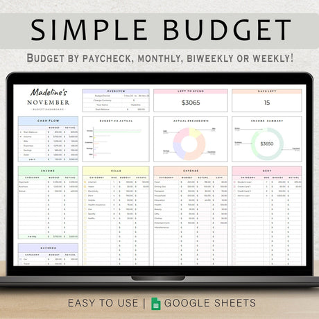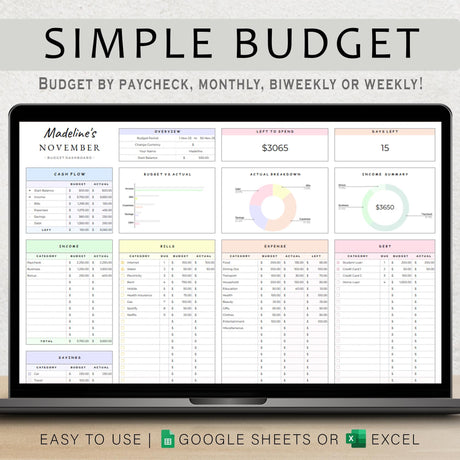 Budget Planner Google Sheets | Monthly & Paycheck Excel Template