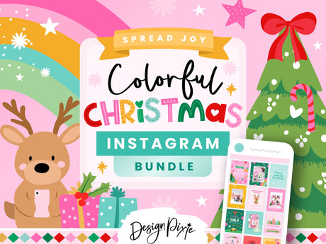 Christmas Instagram Templates | Colorful Holiday Canva Posts & Stories