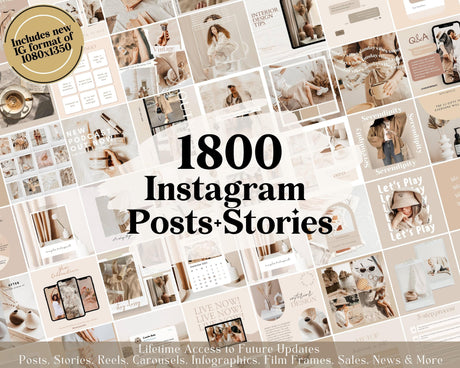 $204.12Unit price /Unavailable 1800 Aesthetic Neutral Instagram Templates | Beige Boho Canva