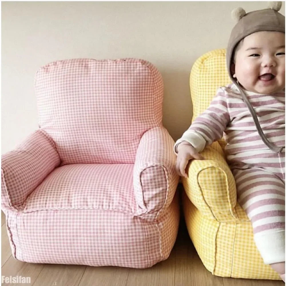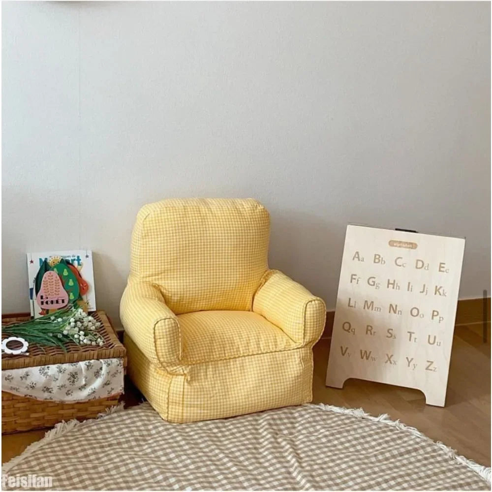 INS Children's Single Kindergarten Bean Bag Sofa Plaid Canvas Mini Chair Seat Early Education Institution Baby Furniture