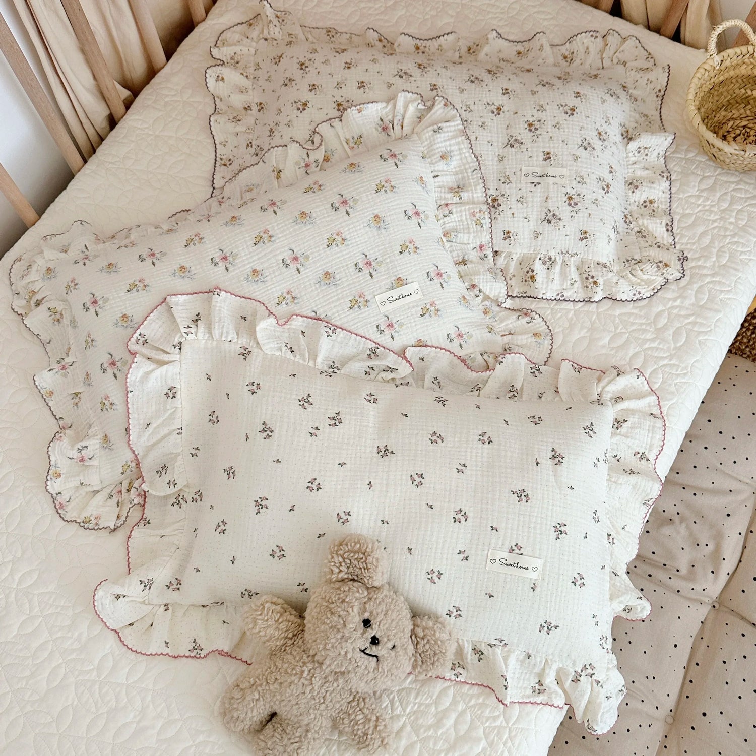 Cotton Muslin Baby Pillowcase Floral Print Newborn Pillow Case Pillow Cover for Babies 30x50cm 48x74cm Kids Bedding Sets