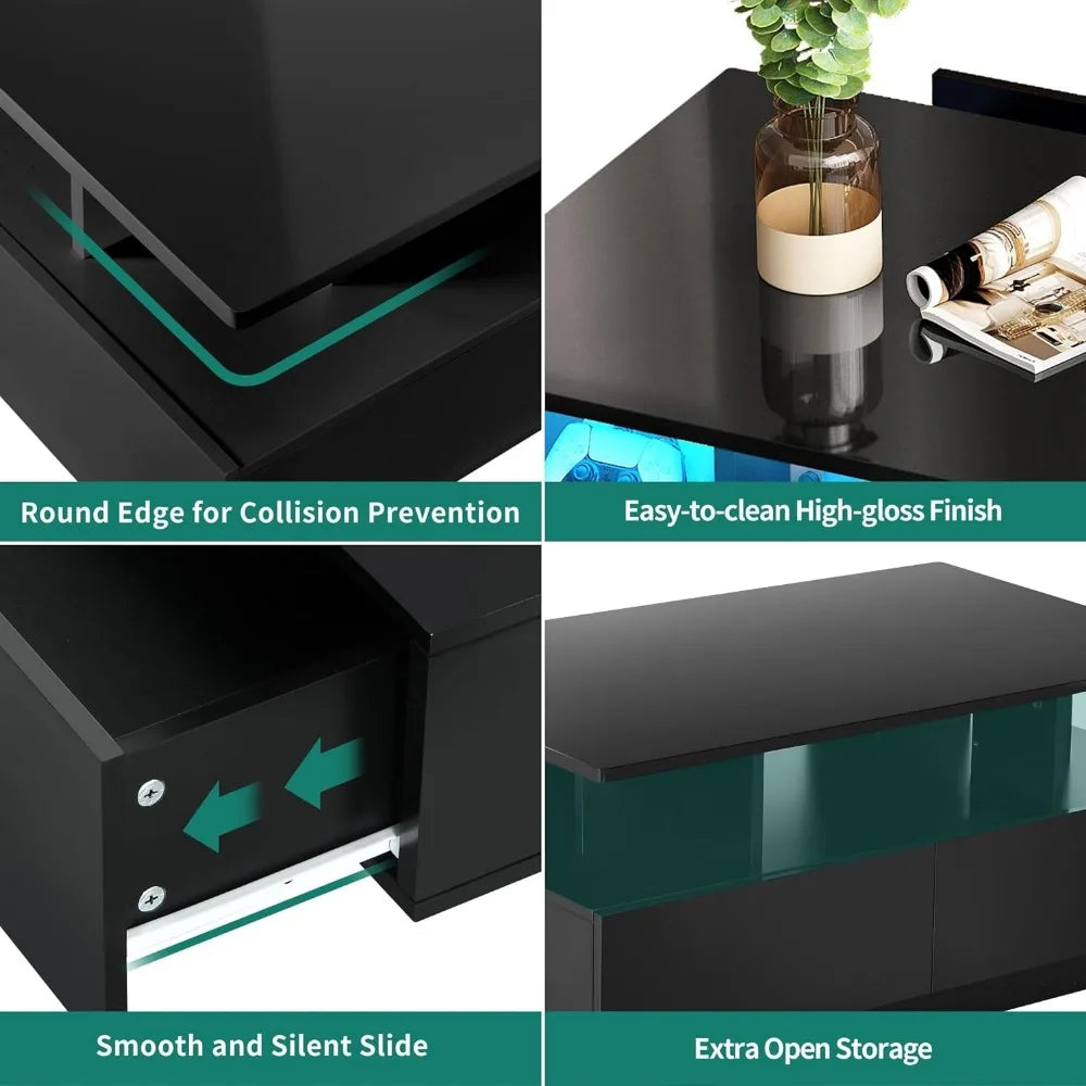 LED coffee table with storage, living room high gloss LED coffee table, small center table with open display stand - White / United States / VIP Price is backordered and will ship as soon as it is back in stock.
