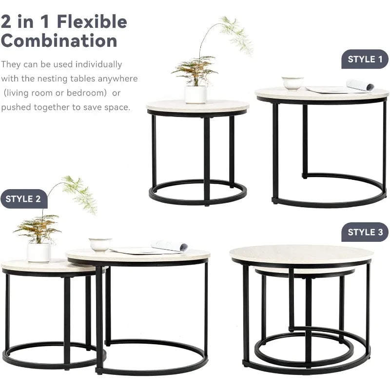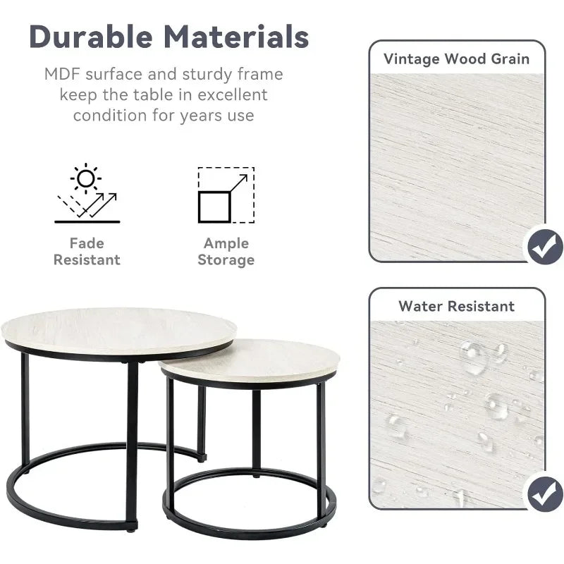 Miereirl Round Nesting Coffee Table Circle Accent Tables for Small Spaces Side End Set of 2 Living Room Balcony Office