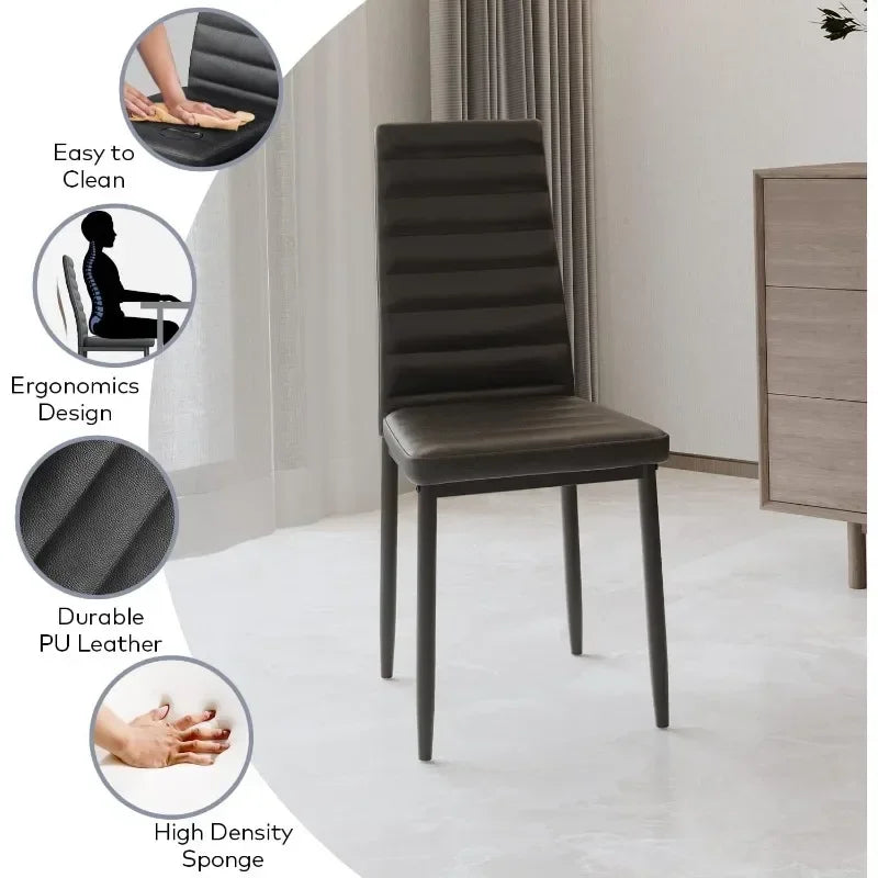 Gizoon Glass Dining Table Sets for 6, 7 Piece Kitchen Table and Chairs Set for 6 Person, PU Leather Modern Dining Room Sets