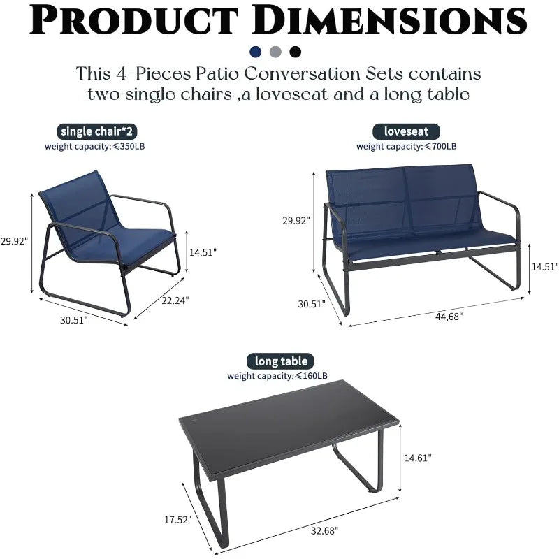 PAIQIAN 4-Pieces Patio Furniture Set Patio Furniture Outdoor Furniture Modern Conversation Set Bistro Set with Loveseat and Coff