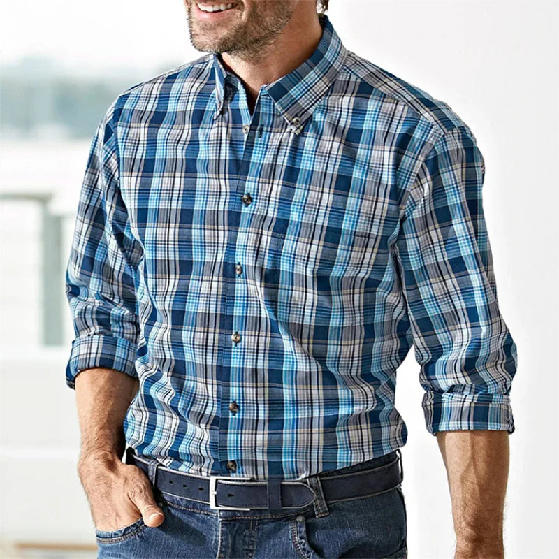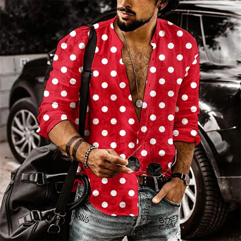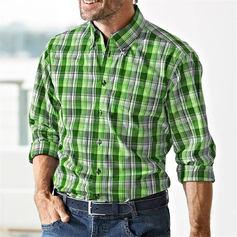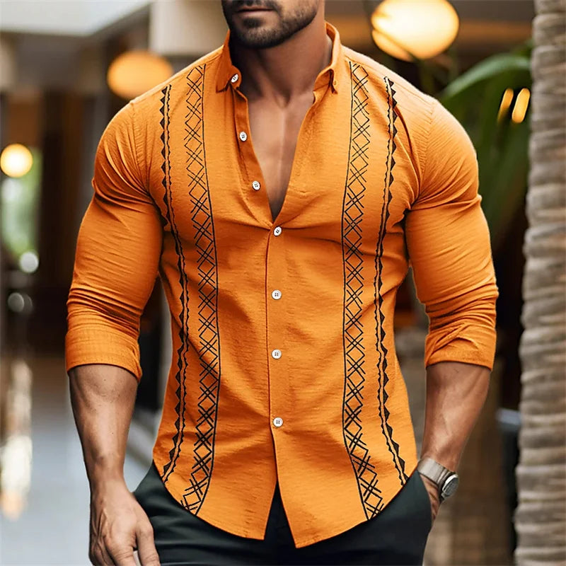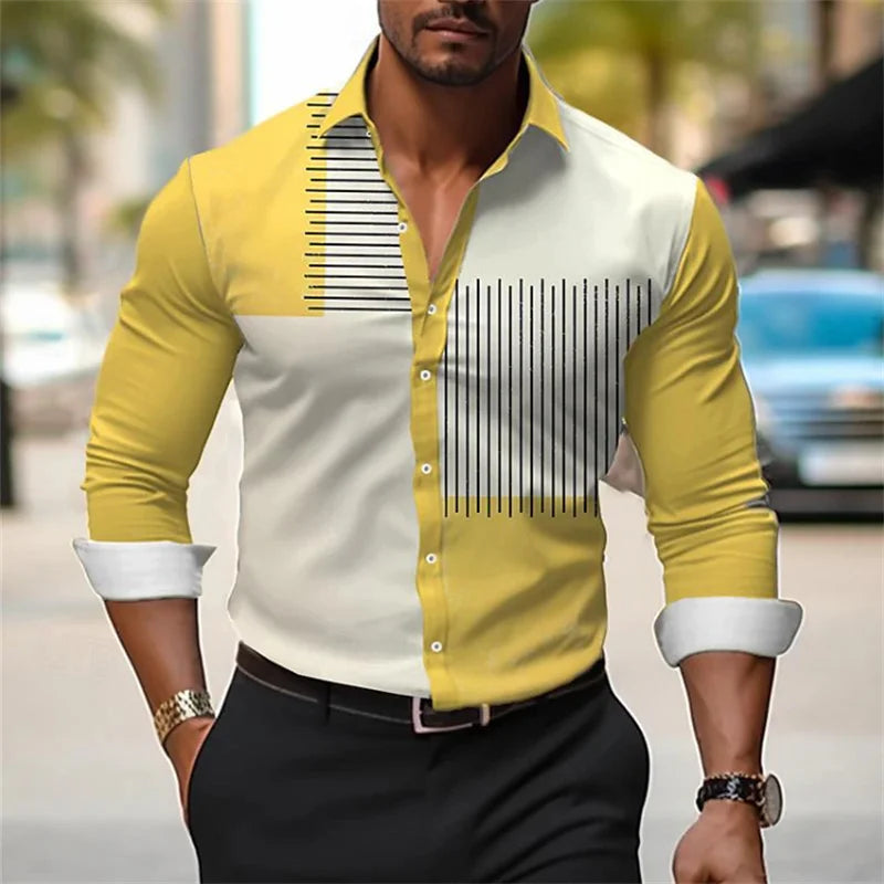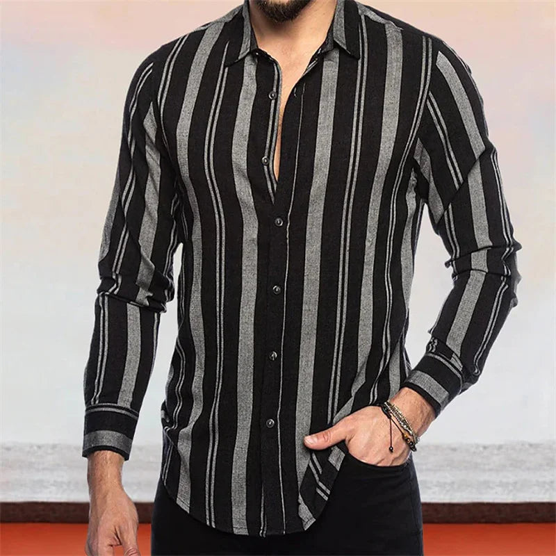 Men's button-up shirt casual business spring and summer large size long-sleeved striped print work daily vacation shirt