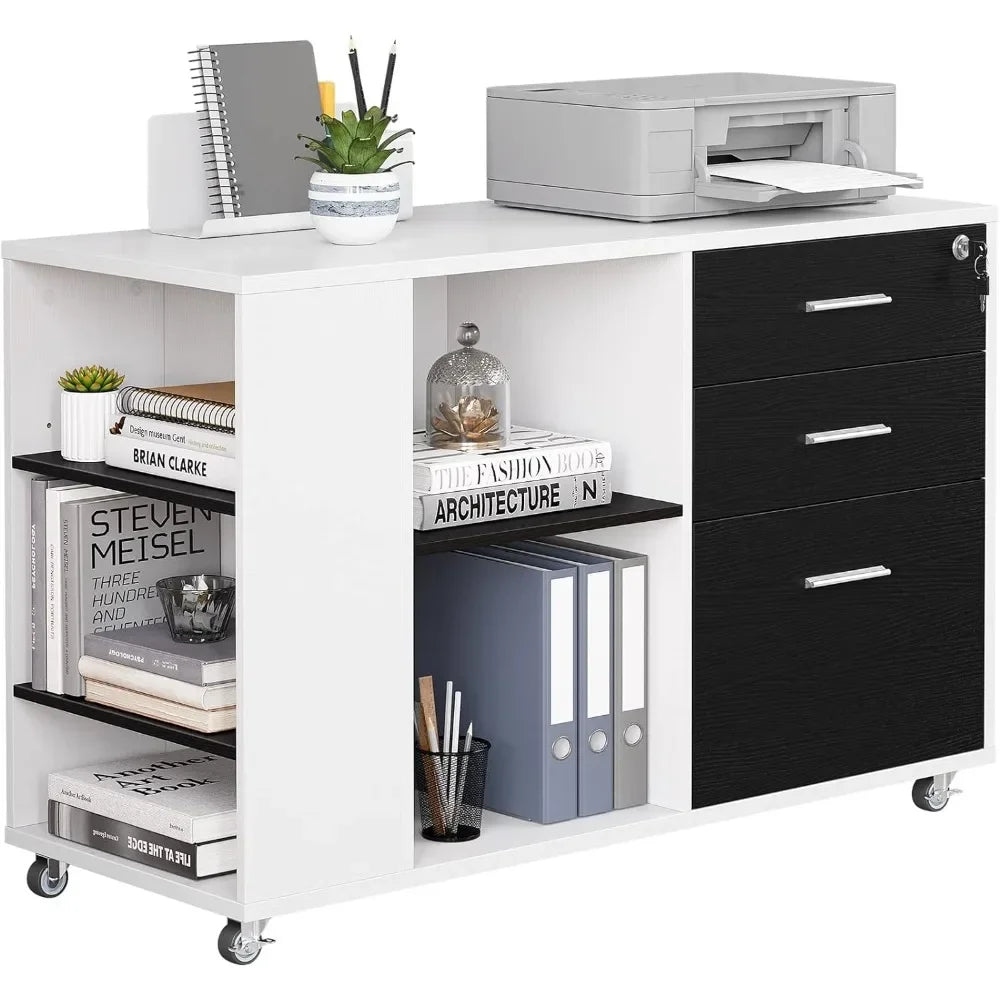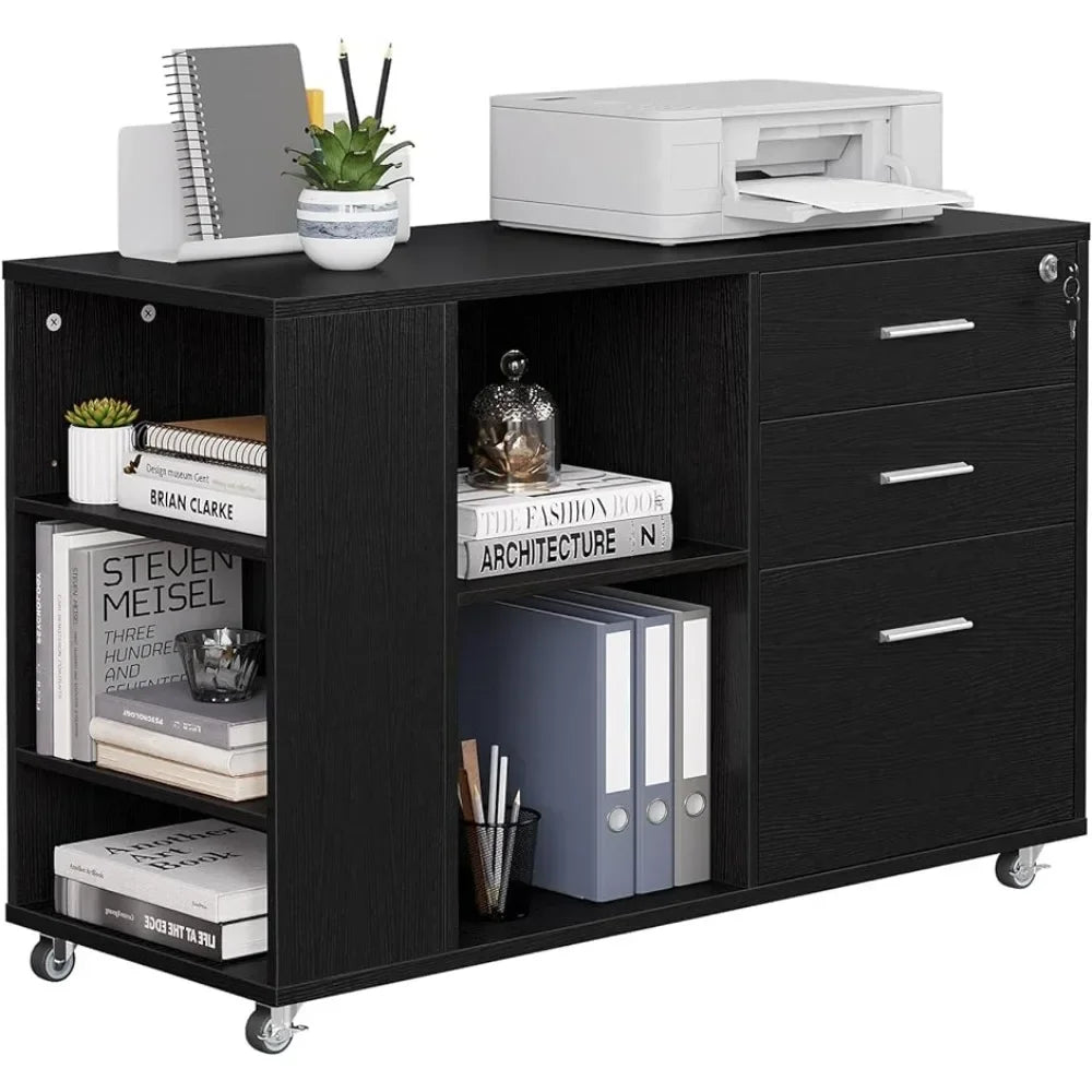 Mobile Wood File Cabinet Filing Cabinets 3 Drawer Lateral Filing Cabinet With Open Side Storage Shelves Freight Free