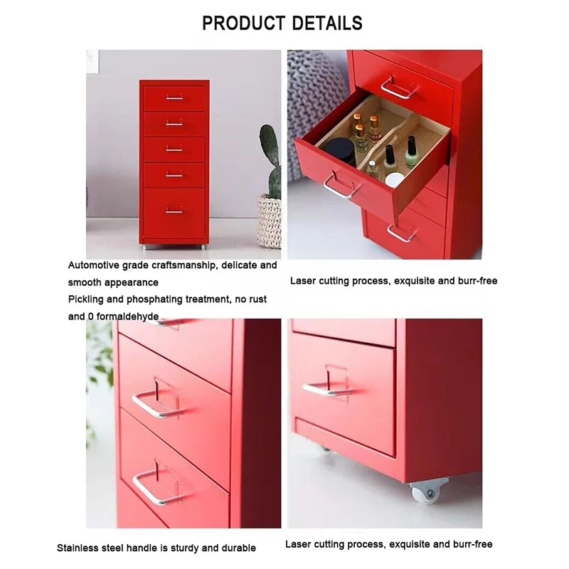 Organizer Office Supplies 5 Drawer Wooden Office Cabinet File Storage Cabinet with Lock Floor Stand Wheel Design Movable