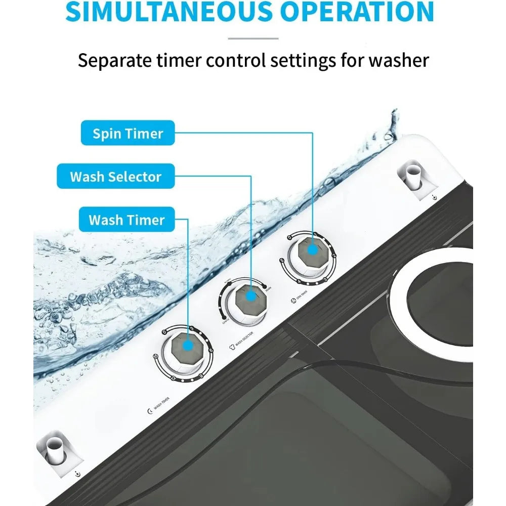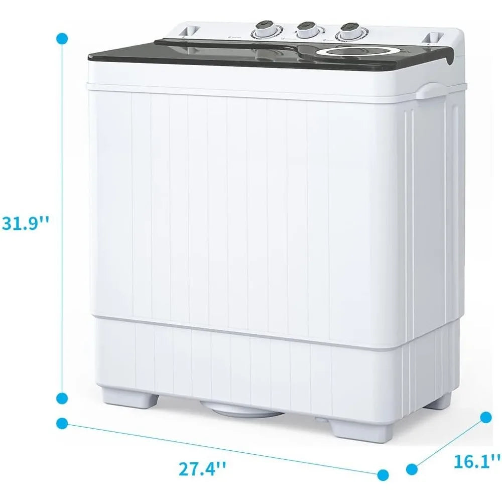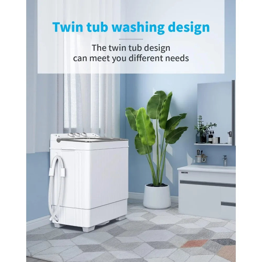 26lbs Compact Twin Tub Portable Washing Machine, Mini Washer(18lbs) & Spiner(8lbs) / Built-in Drain Pump