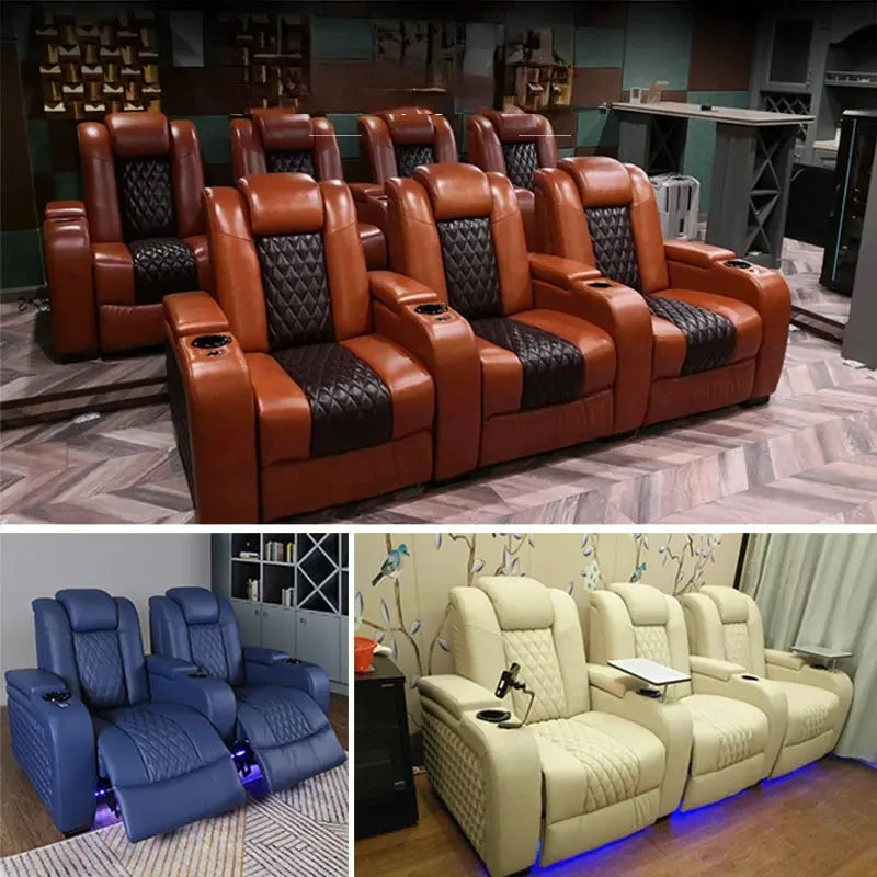 2024 Top electric recliner massage chair theater living room Sofa functional microfiber leather Cinema four-person Power Seats