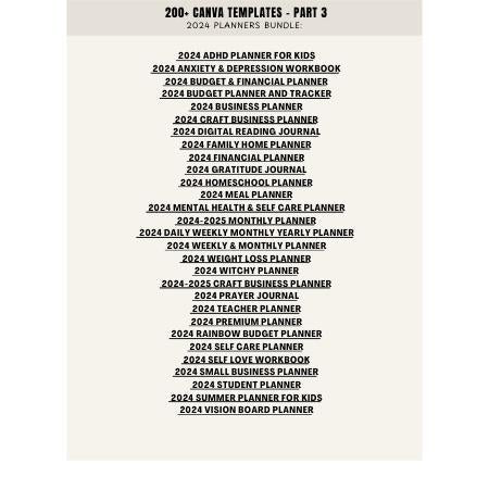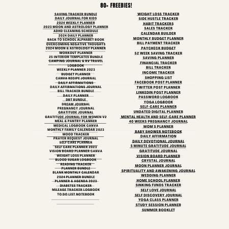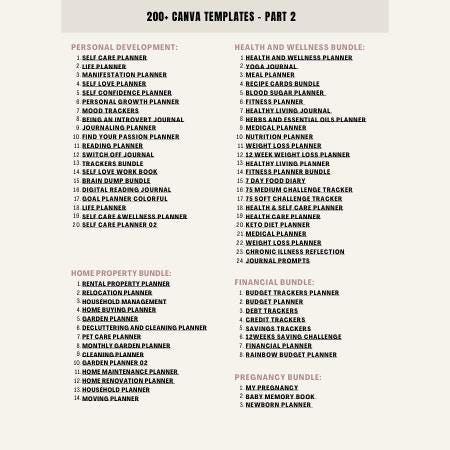 Health & Wellness: Fitness logs, Weight loss trackers, Self-Care bundles, and Meal Planning systems.