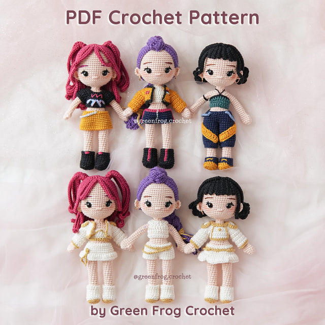 Bring the stage to your craft room! This 3-in-1 Crochet Pattern Bundle allows you to create three stunning Kpop-inspired dolls, each featuring two iconic removable outfits. Designed for fans of fashion and music, these "Hunters" dolls offer a fun dress-up experience, allowing you to mix and match high-detail stage wear and trendy casual looks.